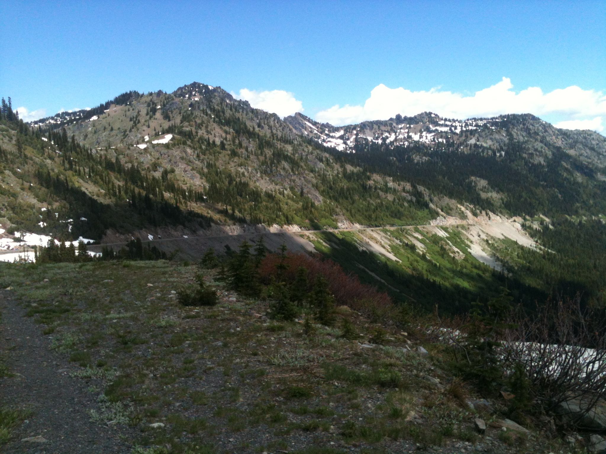 No one seemed very eager to roll out and I realized that I was at the head of the pack, save for one ambitious fellow who quickly disappeared from view. Soon the stronger riders began to apply some effort, I stopped for a second to remove a layer; and I was relegated to the back. Andy was right there with me. At Greenwater, after we’d been climbing gently for a few miles, we stopped at a store for food and water. A few of the others were just leaving. We let them go because it was the last store until Cliffdell, 85km later. Chinook pass was breathtaking, but gave us our first taste of heat and I soon finished off all my water. There was a large RV parked at the summit and I caught the eye of a woman inside. She graciously gave me two bottles of water and we began the descent into the arid side of the state. At Cliffdell, (almost 1/5 done, or more than half way to the first sleep stop!) we were a bit behind the schedule I wanted to keep, but I was out of water again and pretty hungry. We could have gotten some “food” at the gas station and been on the road in a few minutes, but instead chose a sit down meal in the air-conditioned Whistlin’ Jack’s Restaurant.
