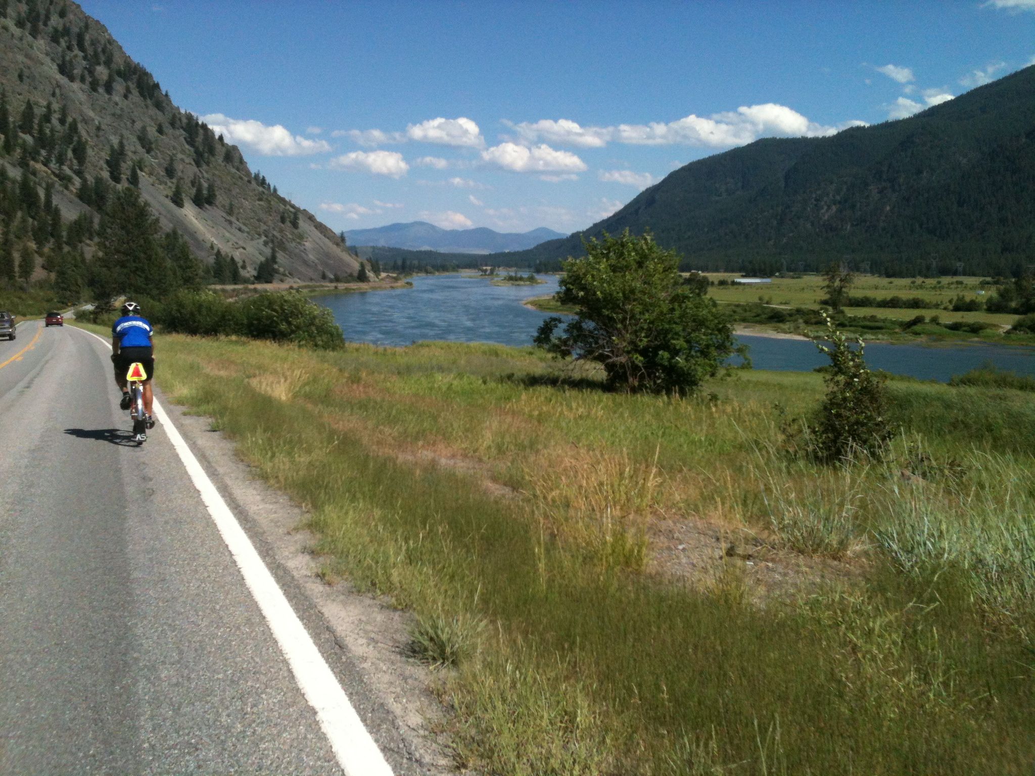 Our route for the next few miles followed the Clark Fork River on a gently rolling road with no shade.