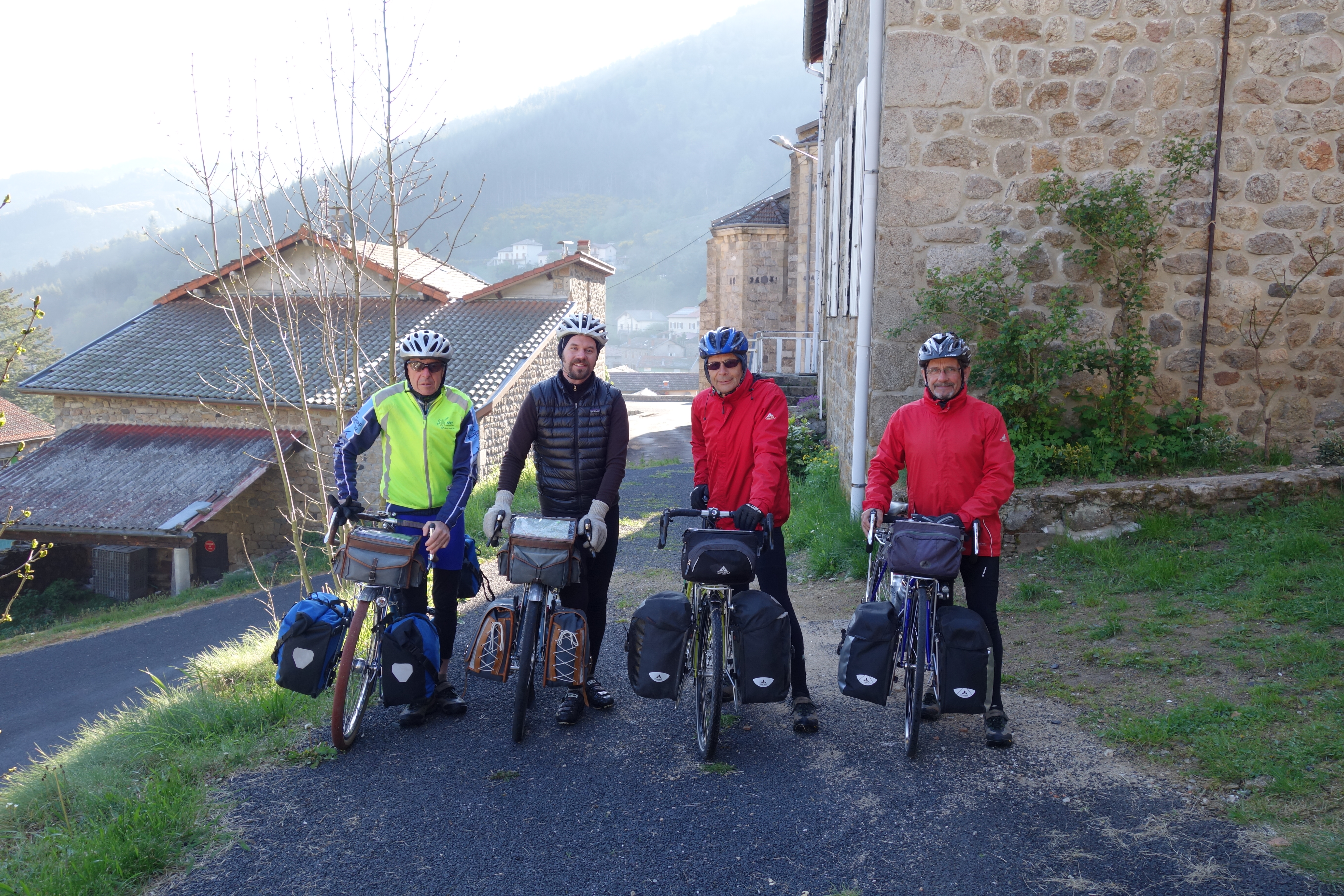I took most of the month of May off and went to Europe to visit friends and ride my bike. First up, after a couple days of socializing in Guingamp, was a tour of the Ardèche region with three friends. On the way to the start of our tour in LaLouvesc, we drove over the Col de la République, formerly known as the Col du Grand Bois. We stopped and took a photo at the monument to Vélocio.