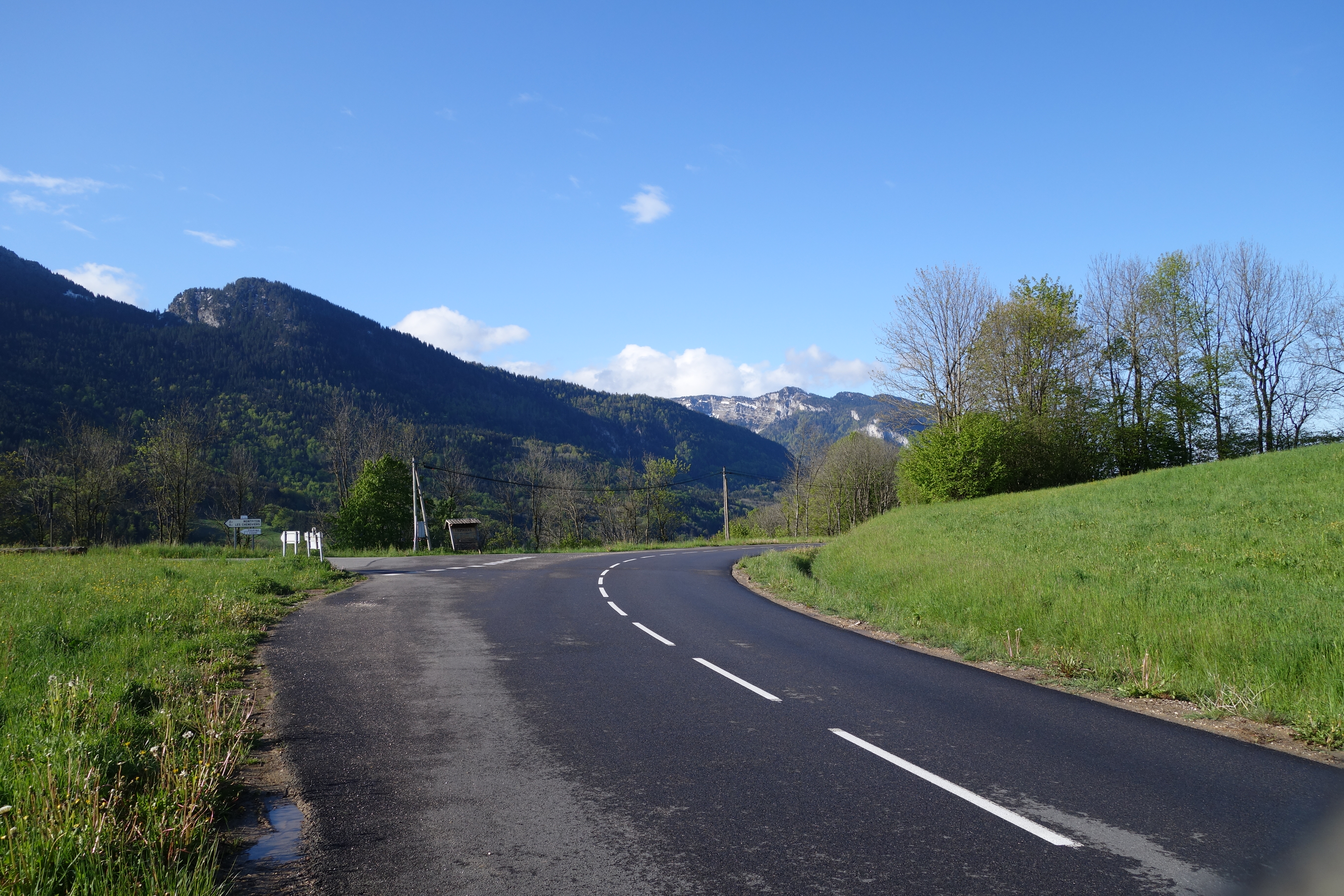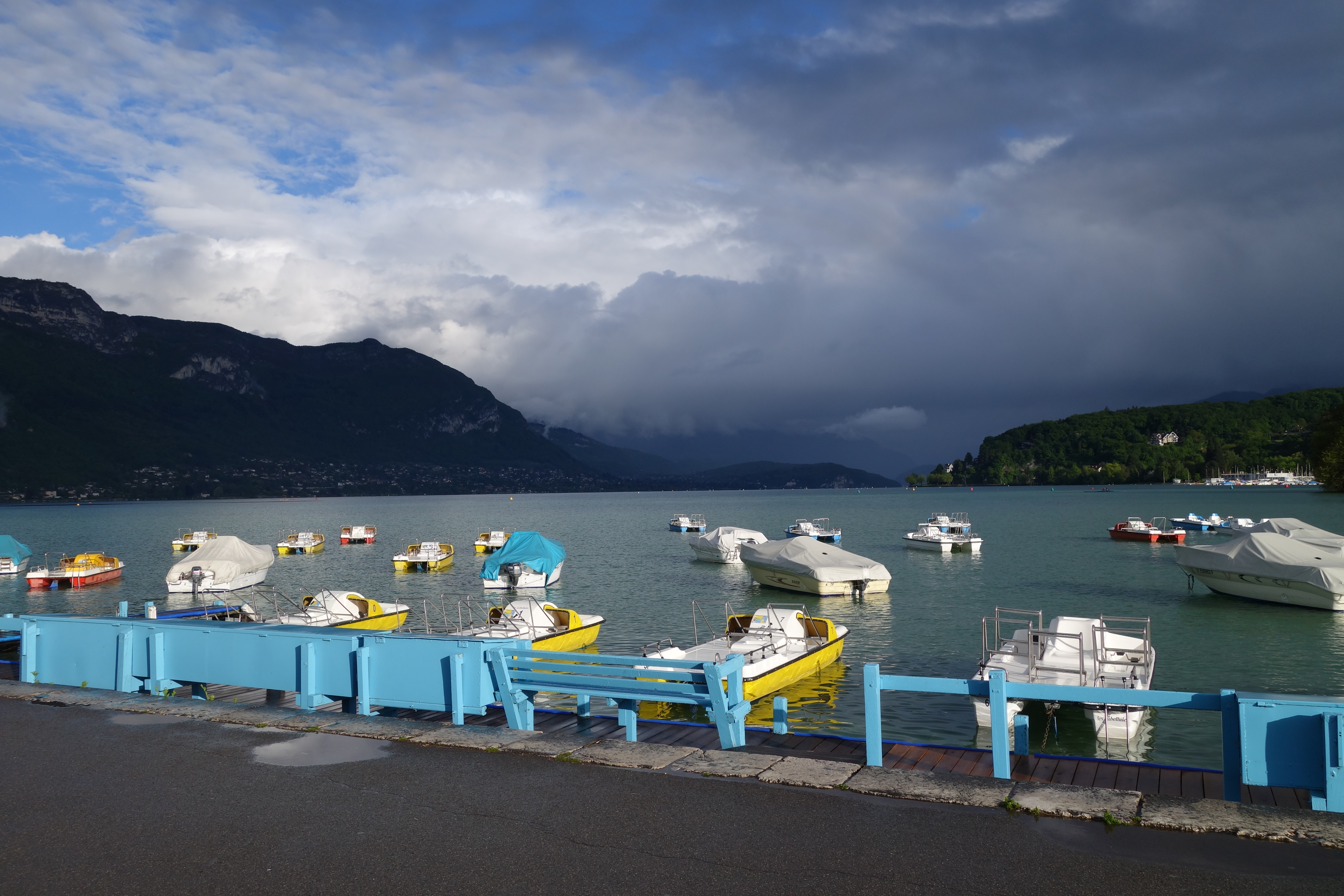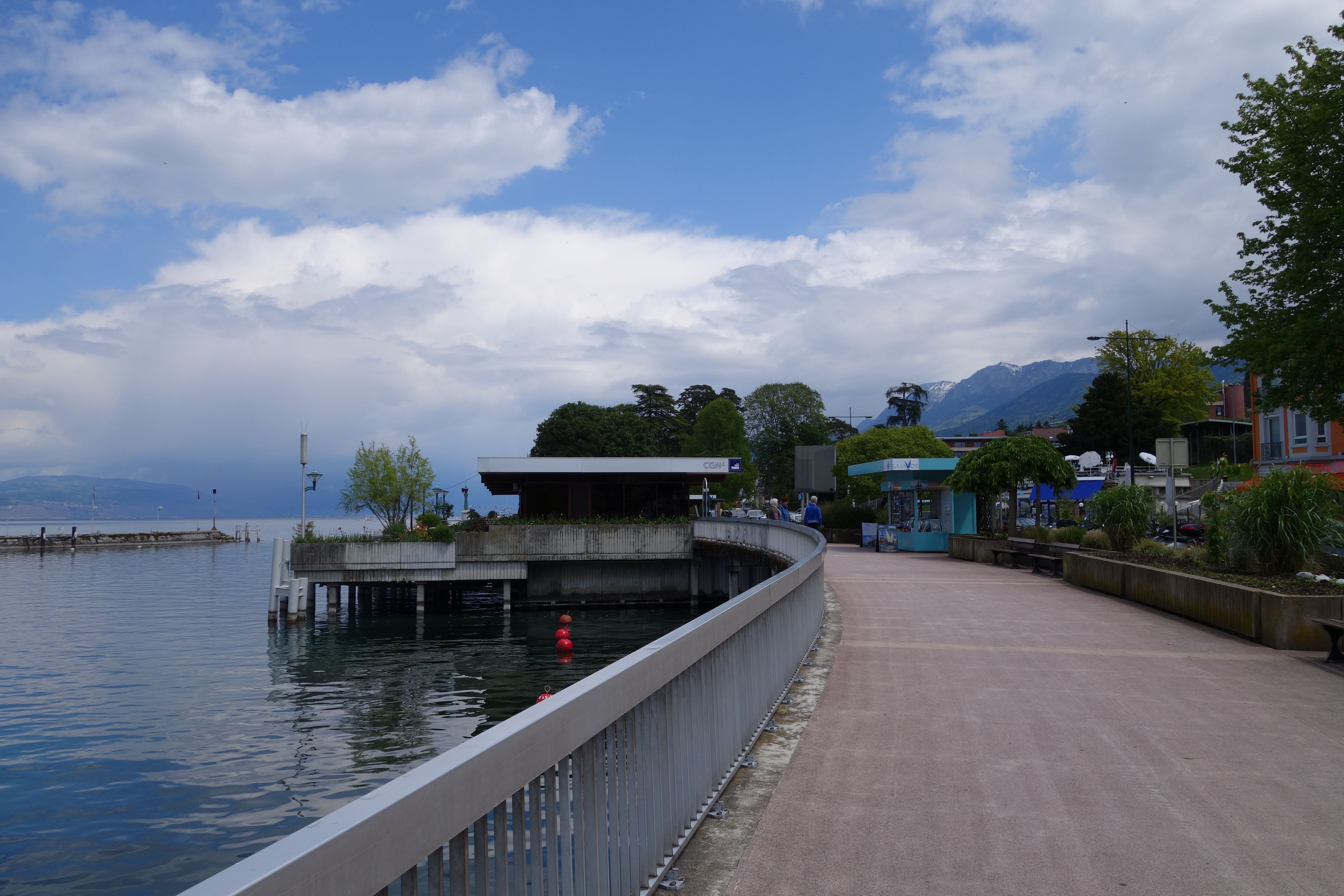 As you can see from the picture above, rain was threatening. It held off until I was snug in my tent that night and then let loose with a vengeance. When I awoke the next morning, the storm had blown itself out and I was able to continue on my way. The rough plan was to arrive in Thonon-les-Bains on the southern shore of Lake Geneva and take a boat across to Lausanne, but I wanted to avoid the main roads. I looked at the map and selected some small roads that looked promising. I hadn’t bargained on the fact that those roads cross a low range of mountains, but it was still a beautiful ride, just a little harder than I expected.