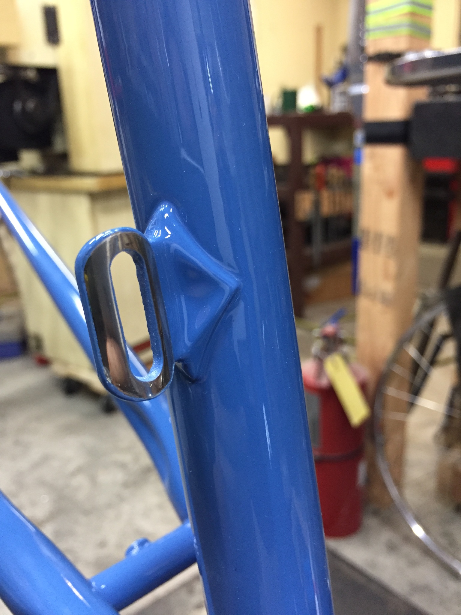 The adapter bracket for the decaleur worked out well. It was a little bit heavier than the alternatives, but easy to make and allowed me to use the really excellent Rene Herse/Compass decaleur with the lock pin. I made it out of stainless, it seemed like aluminum would crack eventually. I always use 5/16″ or 3/8″ on rear racks unless it’s just a little one that doesn’t go all the way to the dropouts.
